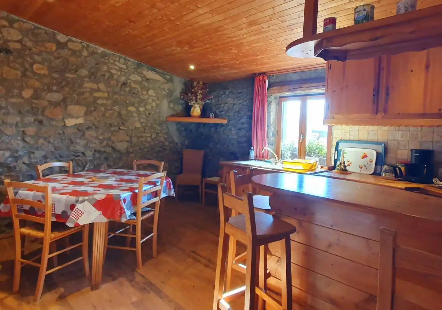 1 salle à manger / cuisine ouverte entièrement équipée avec micro-ondes, lave-vaisselle, four, réfrigérateur, plaque de cuisson, petit électroménager (service raclette et pierrade,